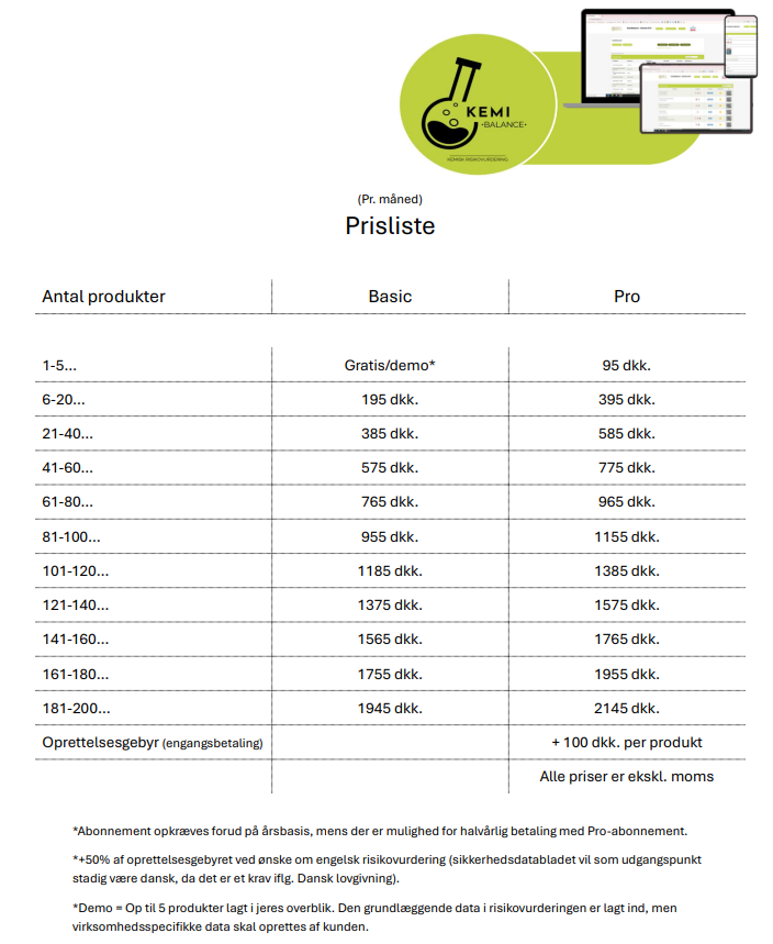 - Adgang til kemibibliotek med over 500 forskellige leverandørsikkerhedsdatablade …
